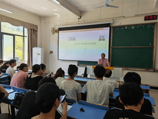 机械系主任刘朝晖博士分析了考研形势,对考研如何备考提出建议。建议同学们在备考过程中要注重基础知识的巩固,同时要注重知识的灵活运用和解题技巧的培养,并分享了一些有效的学习方法,让同学们受益匪浅。
